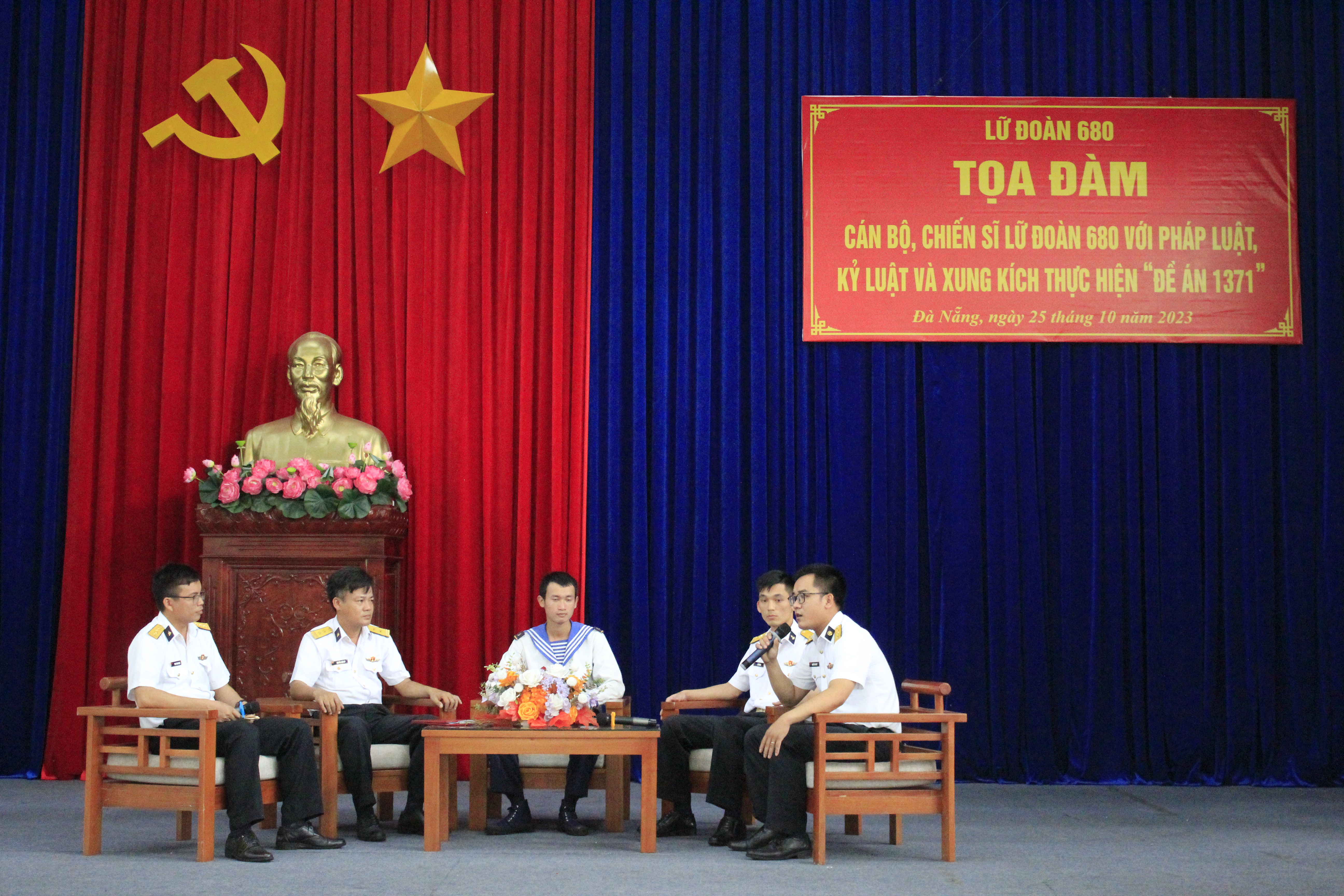 Chiều 25/10, tại TP. Đà Nẵng, Lữ đoàn 680, Vùng 3 Hải quân tổ chức Tọa đàm với chủ đề: Cán bộ, chiến sĩ Lữ đoàn 680 với pháp luật, kỷ luật. Tới dự, chỉ đạo có Thượng tá Nguyễn Thanh Minh, Phó Chính ủy Lữ đoàn.