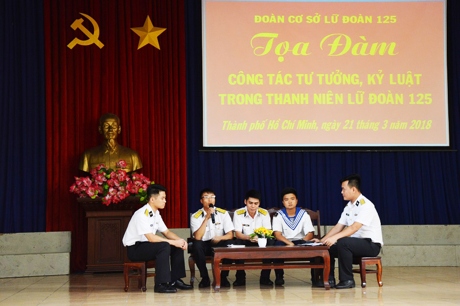 Chiều 21-3, tại TP. Hồ Chí Minh, Đoàn cơ sở Lữ đoàn 125, Vùng 2 Hải quân đã tổ chức Tọa đàm “Công tác tư tưởng, kỷ luật trong thanh niên Lữ đoàn 125” và phát động phong trào thi đua “Thanh niên Lữ đoàn 125 Hải quân xung kích, sáng tạo; đoàn kết, lập công; bảo vệ vững chắc biển, đảo Tổ quốc”.