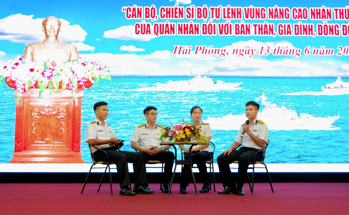Sáng 13/6, tại huyện Thủy Nguyên (TP. Hải Phòng), Vùng 1 Hải quân tổ chức tọa đàm với chủ đề “Nâng cao nhận thức, trách nhiệm của quân nhân đối với bản thân, gia đình, đồng đội và đơn vị”.