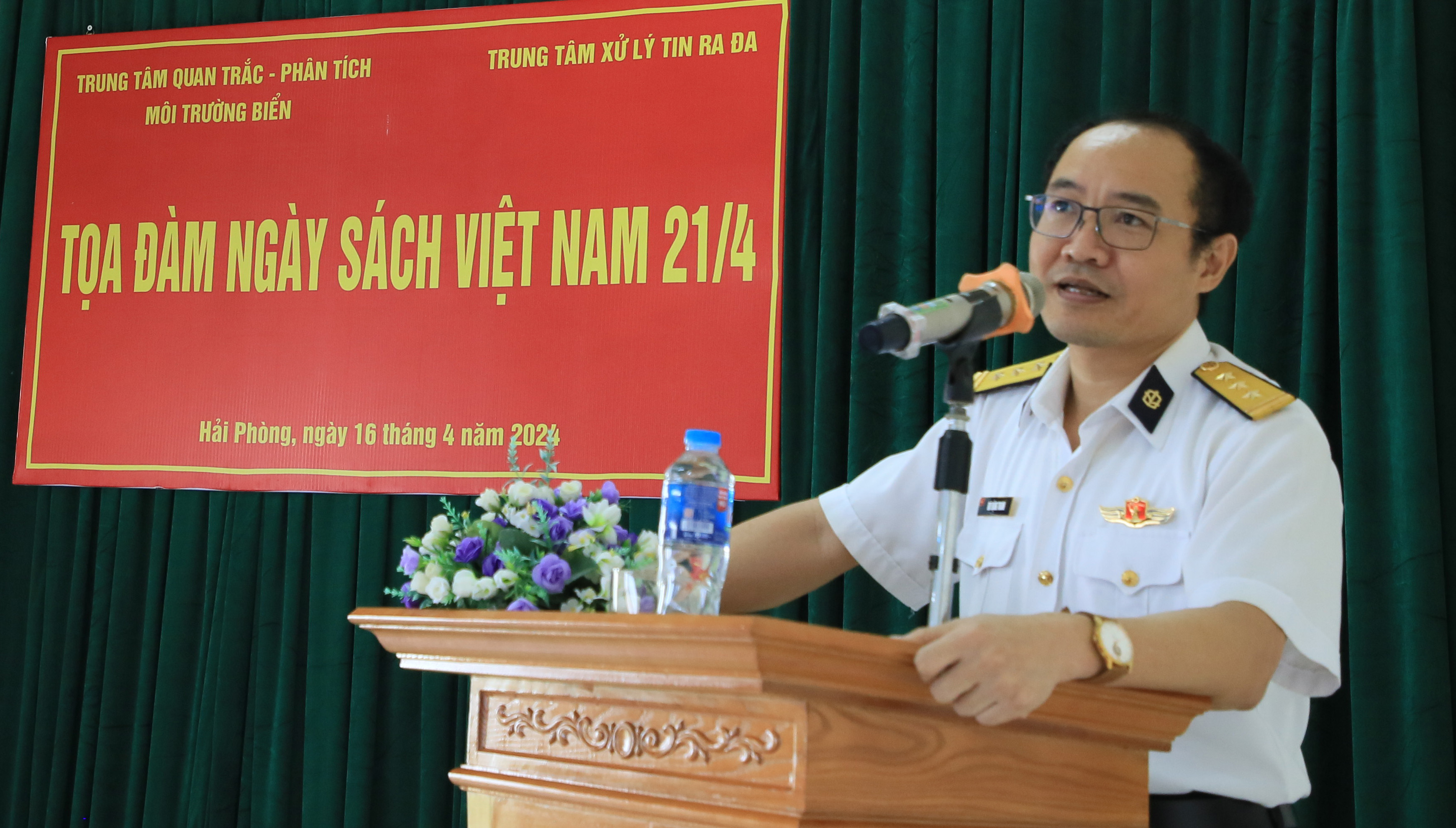 Trao đổi tại tọa đàm, Thượng tá Bùi Đặng Thanh, Giám đốc Trung tâm Quan trắc-Phân tích môi trường biển đã chia sẻ những suy nghĩ và kinh nghiệm của bản thân về giá trị, lợi ích của việc đọc sách; làm thế nào để hình thành, duy trì thói quen đọc sách.