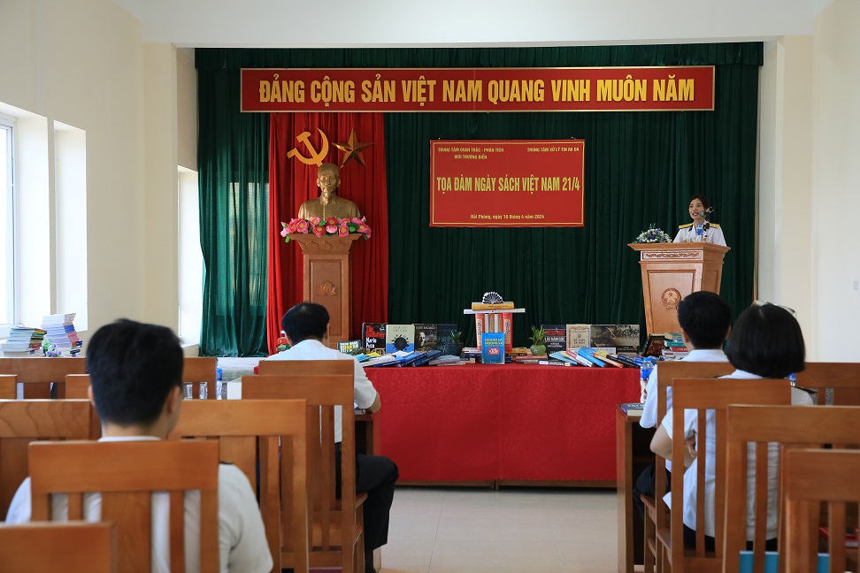 Sáng 16/4, tại TP. Hải Phòng, Trung tâm Quan trắc-Phân tích môi trường biển và Trung tâm Xử lý tin Ra đa (Bộ Tham mưu Hải quân) đã phối hợp tổ chức buổi sinh hoạt chuyên đề, tọa đàm ngày sách Việt Nam. Thượng tá Bùi Đặng Thanh, Giám đốc Trung tâm Quan trắc-Phân tích môi trường biển và Trung tá Nguyễn Văn Đức, Chính trị viên Trung tâm Xử lý tin Ra đa tới dự.