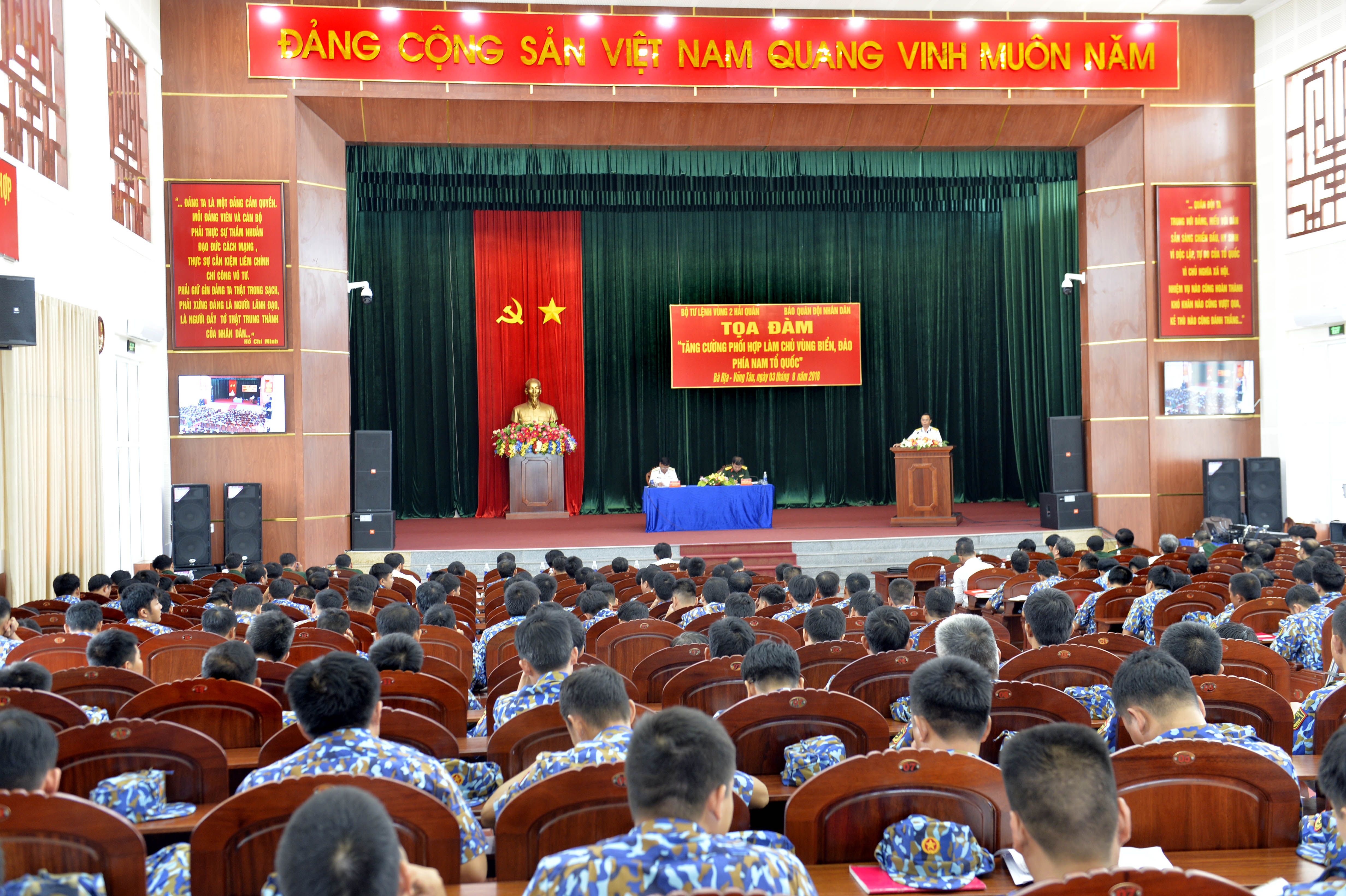 Tọa đàm nhằm trao đổi kinh nghiệm hay, cách làm hiệu quả trong công tác phối hợp giữa các lực lượng cùng thực hiện nhiệm vụ bảo vệ chủ quyền biển, đảo; đồng thời đề xuất, kiến nghị những nội dung cần tăng cường tuyên truyền, phối hợp triển khai nâng cao chất lượng thực hiện nhiệm vụ, làm chủ vùng biển, đảo phía Nam Tổ quốc…