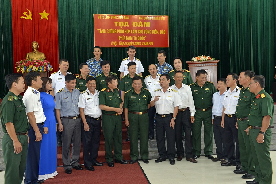 Tham dự tọa đàm có hơn 350 đại biểu đại diện lãnh đạo các đơn vị LLVT; đại diện lãnh đạo, chính quyền địa phương và sở, ngành các tỉnh, thành phố ven biển phía Nam cùng đại diện ngư dân và cán bộ, chiến sĩ Vùng 2 Hải quân.