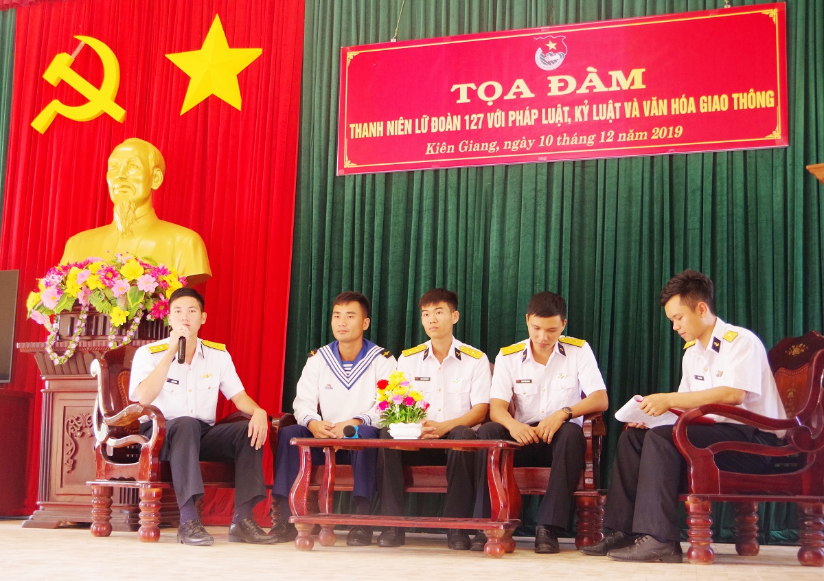 Chiều 10-12, tại huyện đảo Phú Quốc, tỉnh Kiên Giang, Lữ đoàn 127, Vùng 5 Hải quân tổ chức tọa đàm “Thanh niên Lữ đoàn 127 với pháp luật, kỷ luật và văn hóa giao thông”.
