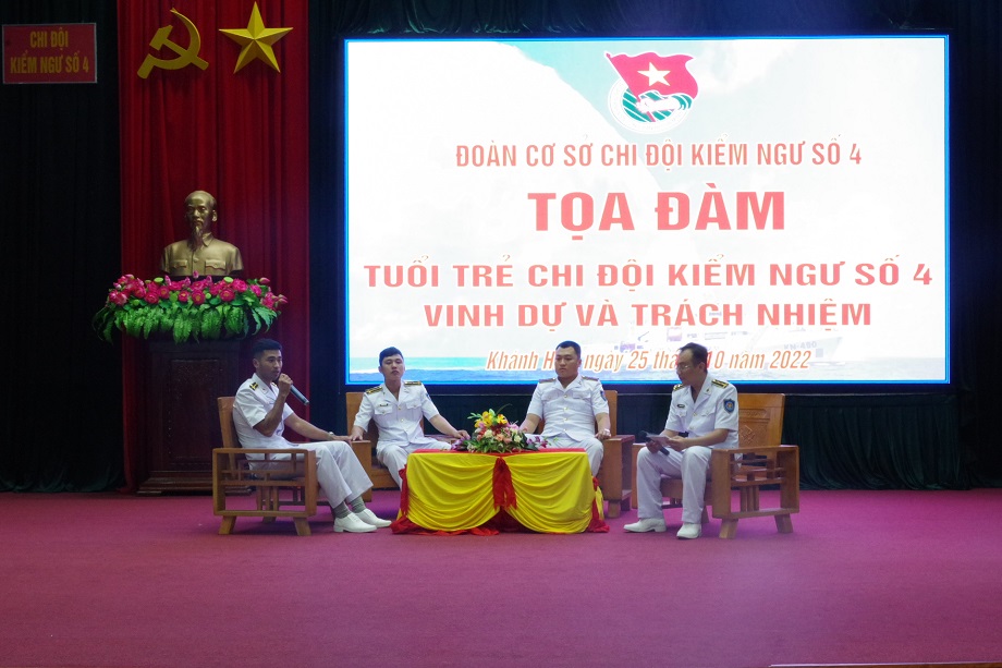Tối 25/10, tại TP. Cam Ranh, tỉnh Khánh Hòa, Đoàn cơ sở Chi đội Kiểm ngư số 4 tổ chức tọa đàm với chủ đề “Tuổi trẻ Chi đội Kiểm ngư số 4 - Vinh dự và trách nhiệm”.