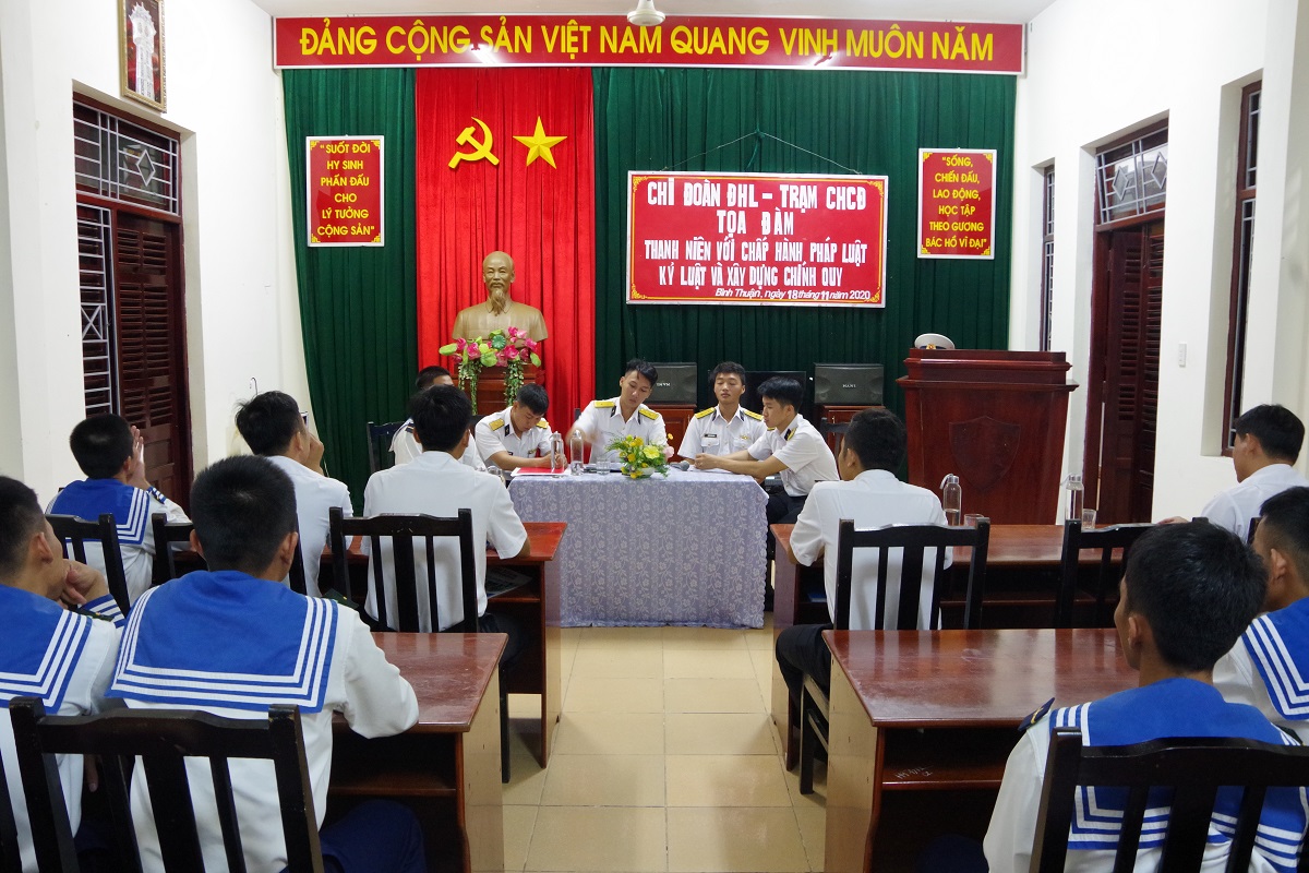 Tối 18-11, tại Bình Thuận, Đoàn cơ sở Lữ đoàn 681, Vùng 2 Hải quân tổ chức Tọa đàm “Thanh niên với chấp hành pháp luật, kỷ luật và xây dựng chính quy”.