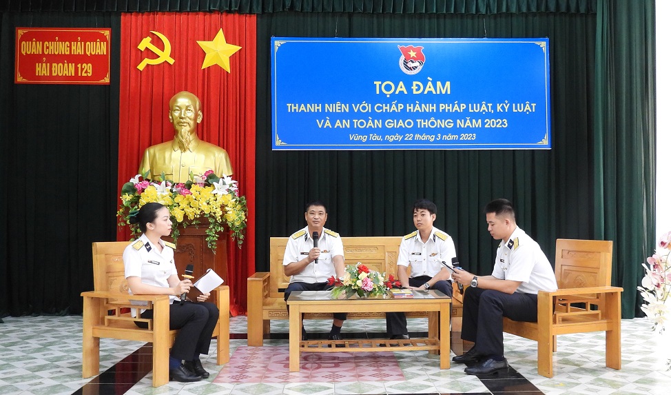Ngày 22/3, tại TP Vũng Tàu, tỉnh Bà Rịa-Vũng Tàu, Đoàn cơ sở Hải đoàn 129 Hải quân tổ chức tọa đàm “Thanh niên với pháp luật, kỷ luật và an toàn giao thông”. Thượng tá Phạm Văn Quý, Phó Chính ủy Hải đoàn dự và chỉ đạo.