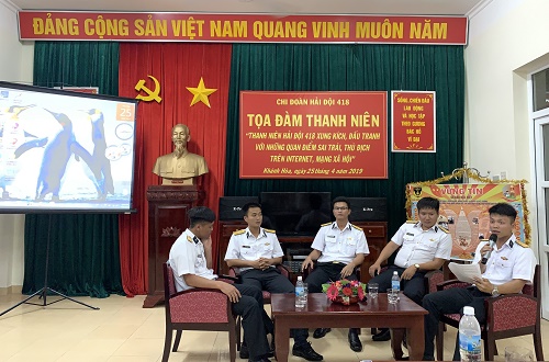 Ngày 25-4, Chi đoàn Hải đội 418, Lữ đoàn tàu ngầm 189 tổ chức tọa đàm với chủ đề "Thanh niên xung kích đấu tranh với những quan điểm sai trái, thù địch trên internet, mạng xã hội". Đây là tổ chức đoàn được lựa chọn làm trước, rút kinh nghiệm triển khai thực hiện trong toàn Lữ đoàn.