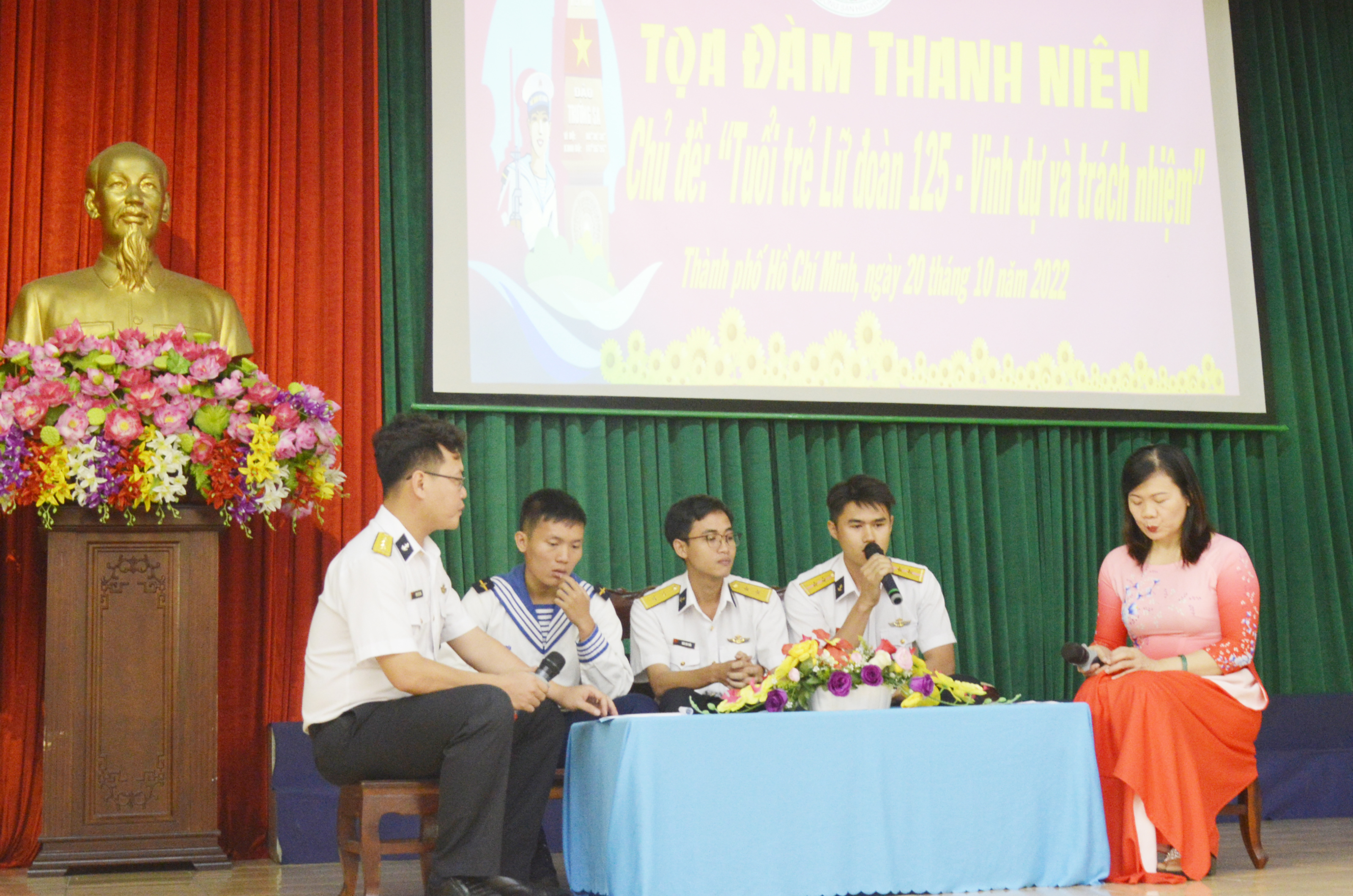 Ngày 20/10, tại TP. Hồ Chí Minh, Đoàn cơ sở Lữ đoàn 125, Vùng 2 Hải quân tổ chức Tọa đàm thanh niên với chủ đề “Tuổi trẻ Lữ đoàn 125-Vinh dự và trách nhiệm”. Dự và chỉ đạo buổi tọa đàm có Thượng tá Lê Hồng Quang, Phó Chính ủy Lữ đoàn.