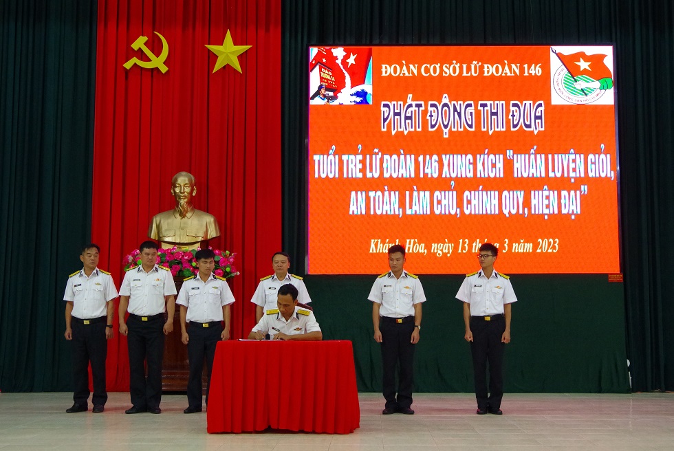 Tối 13/3, tại TP. Cam Ranh, tỉnh Khánh Hòa, Đoàn cơ sở Lữ đoàn 146, Vùng 4 Hải quân tổ chức tọa đàm với chủ đề “Tuổi trẻ Lữ đoàn 146 nói không với vi phạm pháp luật và kỷ luật” và phát động phong trào thi đua “Tuổi trẻ Lữ đoàn 146 xung kích huấn luyện giỏi, an toàn, làm chủ, chính quy, hiện đại”. Thượng tá Lương Xuân Giáp, Bí thư Đảng ủy, Chính ủy Lữ đoàn dự và chỉ đạo.