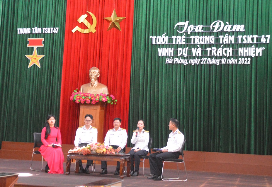 Sáng 27/10, tại Hải Phòng, Đoàn cơ sở Trung tâm 47, Bộ Tham mưu Hải quân tổ chức tọa đàm với chủ đề "Tuổi trẻ Trung tâm 47 - Vinh dự và trách nhiệm”. Dự và chỉ đạo tọa đàm có Đại tá Phạm Thanh Quân, Chỉ huy trưởng; Đại tá Đặng Văn Minh, Bí thư Đảng ủy, Chính ủy Trung tâm.