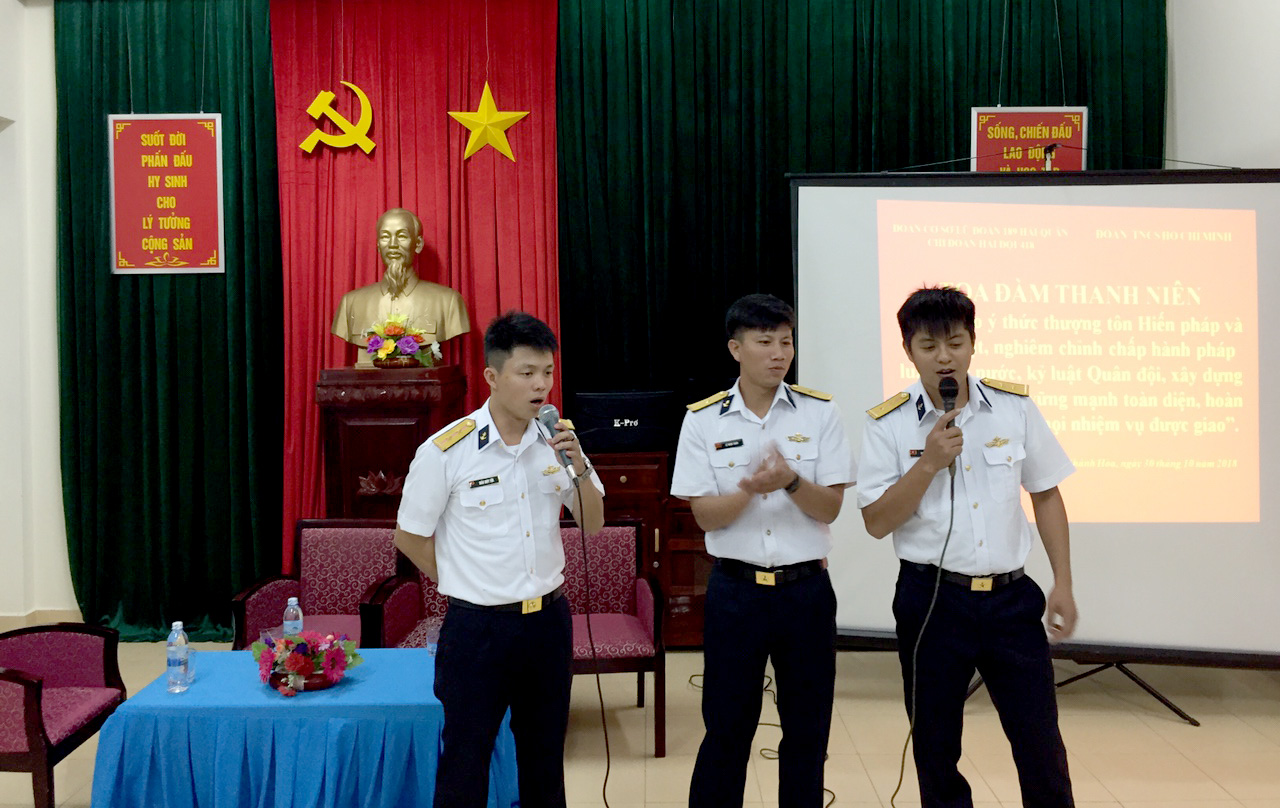 Nằm trong chuỗi hoạt động hưởng ứng Ngày pháp luật, ngày 30-10, tại TP. Cam Ranh, tỉnh Khánh Hòa, Chi đoàn Hải đội 418, Đoàn cơ sở Lữ đoàn tàu ngầm 189 Hải quân đã tổ chức buổi tọa đàm với chủ đề “Tuổi trẻ với chấp hành pháp luật Nhà nước, kỷ luật Quân đội”.