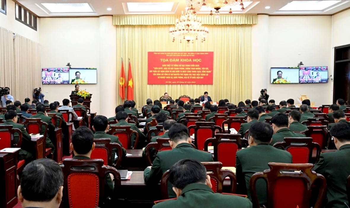 Sáng 20/2, tại Hà Nội, Tổng cục Chính trị Quân đội nhân dân Việt Nam phối hợp với Hội đồng Lý luận Trung ương và Nhà xuất bản Chính trị quốc gia Sự thật tổ chức tọa đàm khoa học: Quán triệt tư tưởng chỉ đạo trong cuốn sách "Kiên quyết, kiên trì đấu tranh phòng, chống tham nhũng, tiêu cực, góp phần xây dựng Đảng và Nhà nước ta ngày càng trong sạch, vững mạnh" của đồng chí Tổng Bí thư Nguyễn Phú Trọng vào thực hiện thắng lợi sự nghiệp quân sự, quốc phòng, bảo vệ Tổ quốc hiện nay.