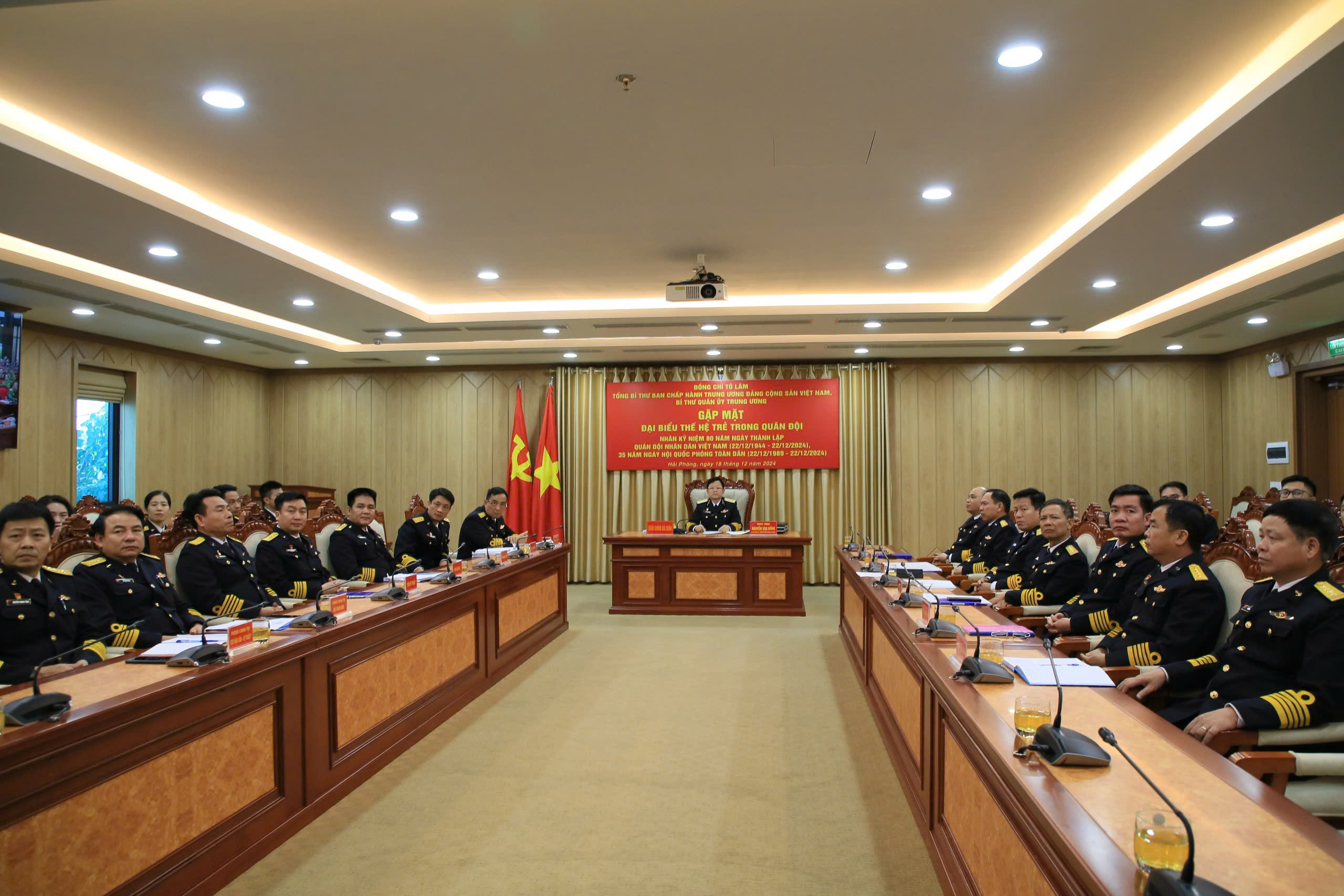 Chiều 18/12, Tổng Bí thư Tô Lâm, Bí thư Quân ủy Trung ương gặp mặt đại biểu thế hệ trẻ trong Quân đội theo hình thức trực tiếp tại Hội trường Bộ Quốc phòng kết hợp trực tuyến tới 132 điểm cầu trong toàn quân. Buổi gặp mặt có sự tham gia của hơn 15.000 đoàn viên, thanh niên Quân đội và Công an nhân dịp kỷ niệm 80 năm Ngày thành lập Quân đội nhân (QĐND) Việt Nam, 35 năm Ngày hội quốc phòng toàn dân.