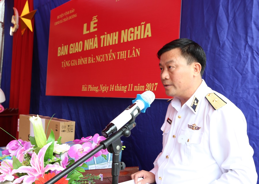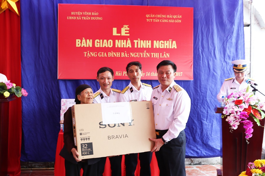 Ngày 14-11, tại xã Trấn Dương, huyện Vĩnh Bảo, TP. Hải Phòng, Tổng công ty Tân cảng Sài Gòn phối hợp với chính quyền địa phương tổ chức lễ bàn giao nhà tình nghĩa cho gia đình bà Nguyễn Thị Lân. Chuẩn Đô đốc Phạm Văn Vững, Ủy viên Thường vụ Đảng ủy Quân chủng, Chủ nhiệm Chính trị Hải quân tham dự.