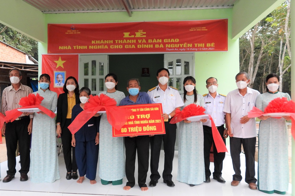 Chiều 16/12, tại huyện Dầu Tiếng, tỉnh Bình Dương, thừa ủy quyền của Tổng công ty Tân cảng Sài Gòn, Hải đoàn 129 phối hợp với Ban Tuyên giáo Tỉnh ủy Bình Dương và chính quyền địa phương tổ chức khánh thành và bàn giao nhà tình nghĩa cho gia đình bà Nguyễn Thị Bê.