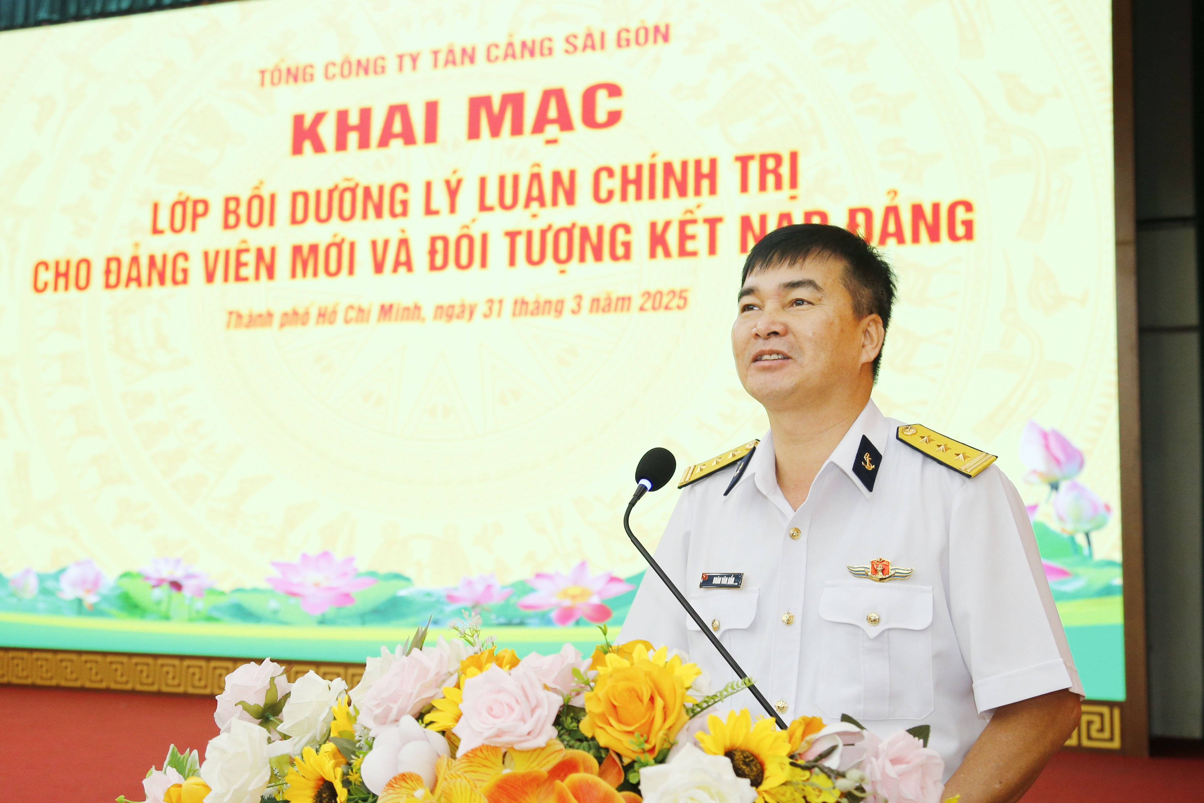 Sáng 31/3, tại TP. Thủ Đức (TP. Hồ Chí Minh), Tổng công ty Tân cảng Sài Gòn tổ chức lớp bồi dưỡng lý luận chính trị cho đảng viên mới và đối tượng đảng năm 2025. Thượng tá Đoàn Văn Uẩn, Phó Chủ nhiệm Chính trị Tổng công ty dự, phát biểu khai mạc.