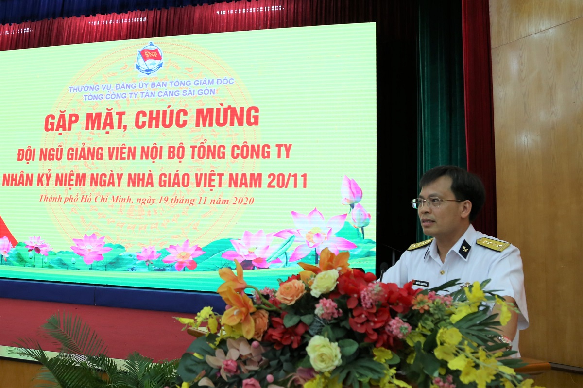 Chiều 19-11, tại TP. Hồ Chí Minh, Tổng công ty Tân cảng Sài Gòn đã tổ chức gặp mặt, chúc mừng đội ngũ giảng viên nội bộ nhân dịp ngày Nhà giáo Việt Nam 20-11. Đại tá Nguyễn Năng Toàn, Phó Tổng Giám đốc dự, chủ trì. Tham dự có đại diện chỉ huy các cơ quan, đơn vị, công ty thành viên và 291 đồng chí là giảng viên nội bộ Tổng công ty.