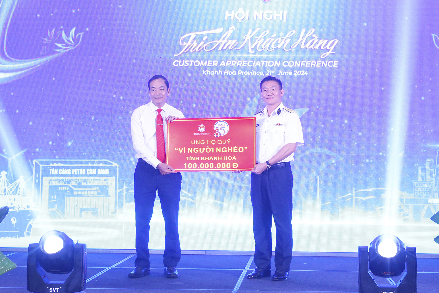 Dịp này, Tân cảng Sài Gòn tổ chức tiệc tri ân khách hàng và ủng hộ Quỹ vì người nghèo tỉnh Khánh Hòa số tiền 100 triệu đồng.
