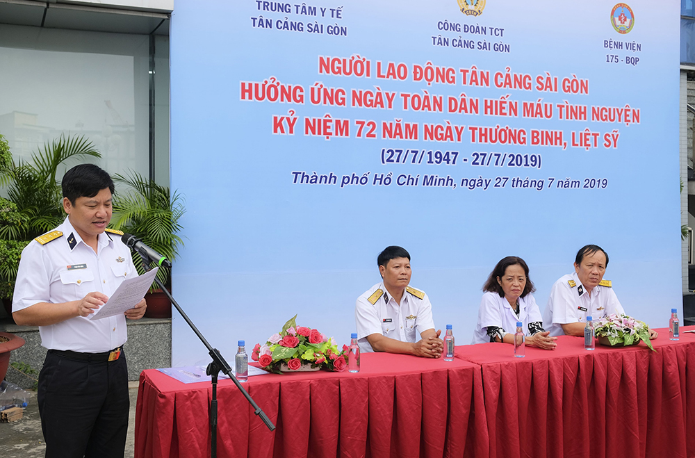 Ngày 27-7, tại Tp. Hồ Chí Minh, Tổng Công ty Tân cảng Sài Gòn, Quân chủng Hải quân phối hợp với Bệnh viện 175, Bộ Quốc phòng tổ chức Lễ phát động hiến máu nhân đạo với chủ đề “Người lao động Tân cảng Sài Gòn hưởng ứng ngày toàn dân hiến máu tình nguyện”.