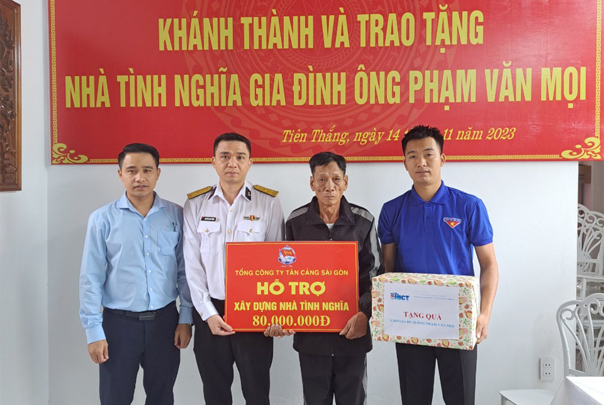 Ngày 14/11, tại huyện Tiên Lãng, TP. Hải Phòng, Tổng công ty Tân cảng Sài Gòn phối hợp với chính quyền địa phương (các xã Đoàn Lập, Tiên Thắng và Vinh Quang) tổ chức khánh thành và bàn giao nhà tình nghĩa tặng các gia đình chính sách.