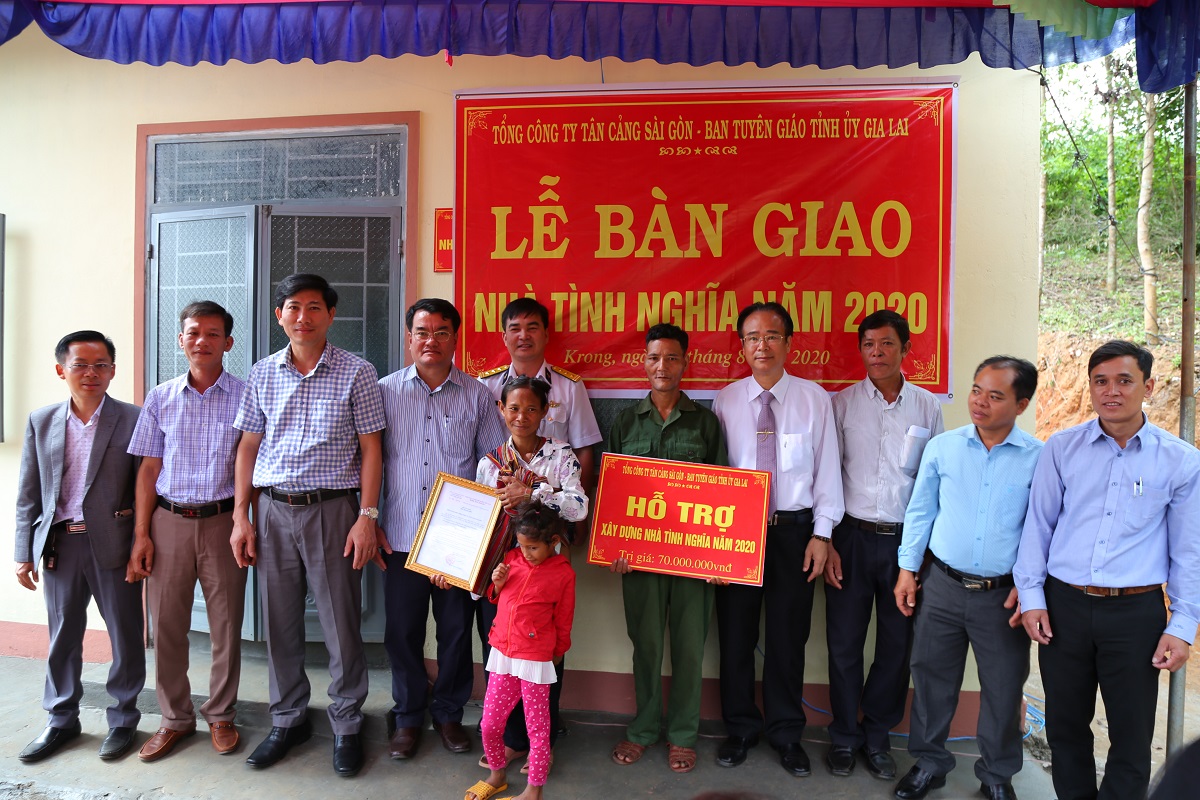 Ngày 28-8, tại Gia Lai, Tổng công ty Tân cảng Sài Gòn phối hợp với Ban Tuyên giáo Tỉnh ủy Gia Lai và chính quyền địa phương tổ chức khánh thành và bàn giao nhà tình nghĩa cho gia đình ông Đinh Bet ở làng Tăng Lăng, xã Krong, huyện Kbang, tỉnh Gia Lai.
