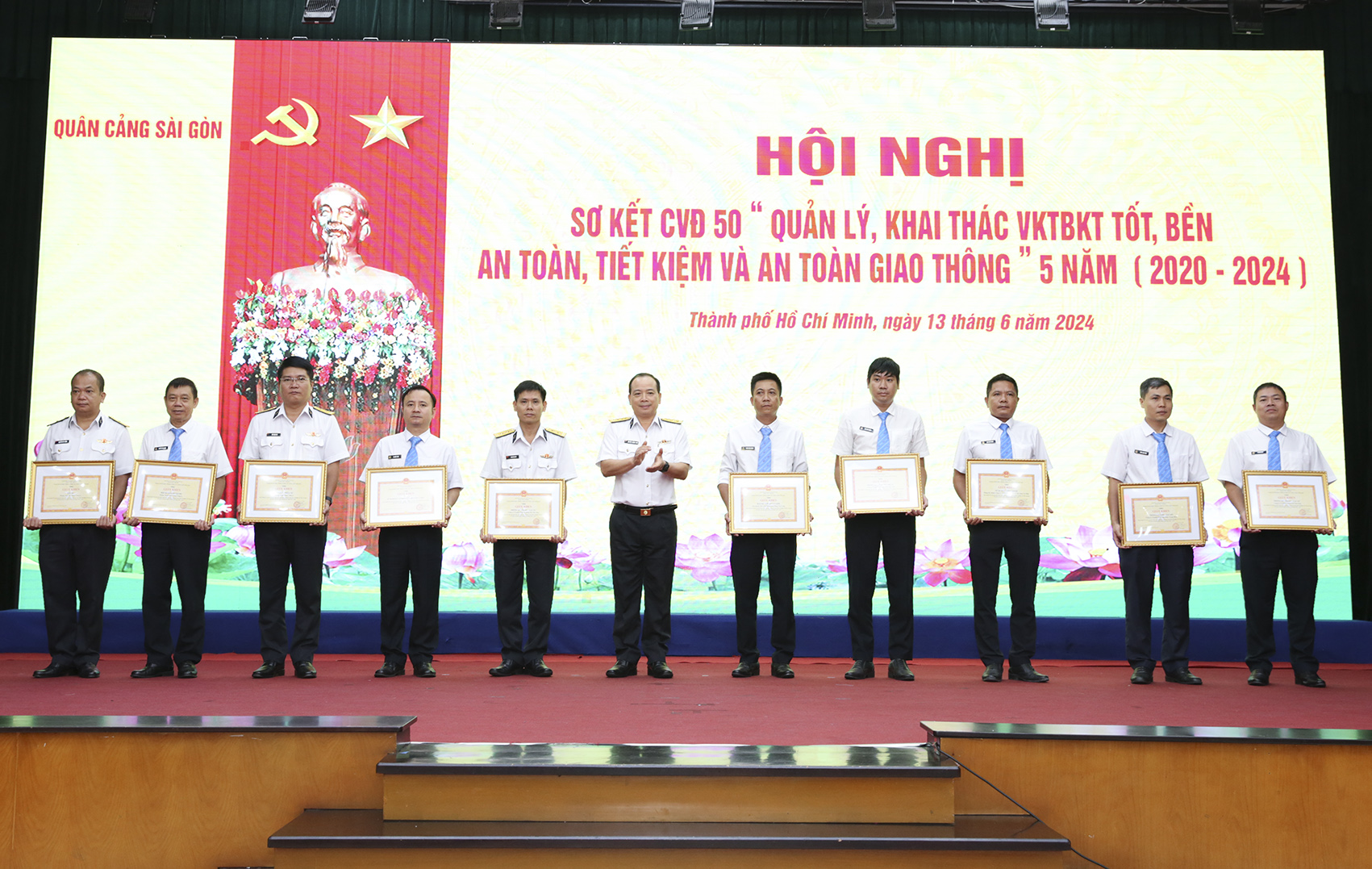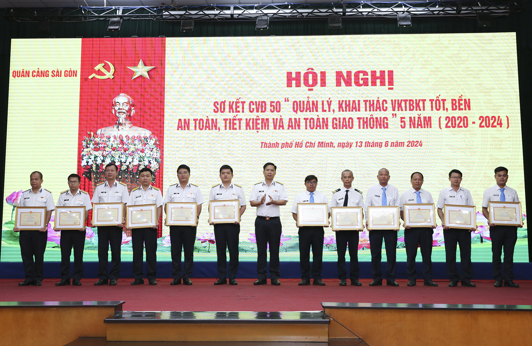 Sáng 13/6, tại TP. Hồ Chí Minh, Tổng công ty Tân cảng Sài Gòn tổ chức Hội nghị sơ kết Cuộc vận động “Quản lý, khai thác VKTBKT tốt, bền, an toàn, tiết kiệm và an toàn giao thông” (CVĐ 50) giai đoạn 2020-2024. Đại tá Nguyễn Thanh Trúc, Phó Tổng giám đốc Tổng công ty dự và chủ trì.
