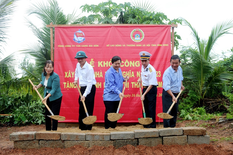 Ngày 16/10, tại Bình Định, thừa ủy quyền của Tổng công ty Tân cảng Sài Gòn, Công ty cổ phần Tân cảng miền Trung phối hợp với Sở Lao động - Thương binh và Xã hội tỉnh Bình Định và chính quyền địa phương khởi công xây dựng nhà tình nghĩa tặng gia đình bà Lê Thị Thanh Liêm.