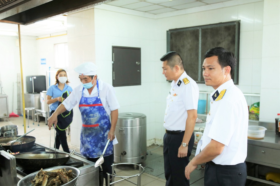 Thượng tá Võ Hoài Nam kiểm tra bếp ăn cảng TCTT