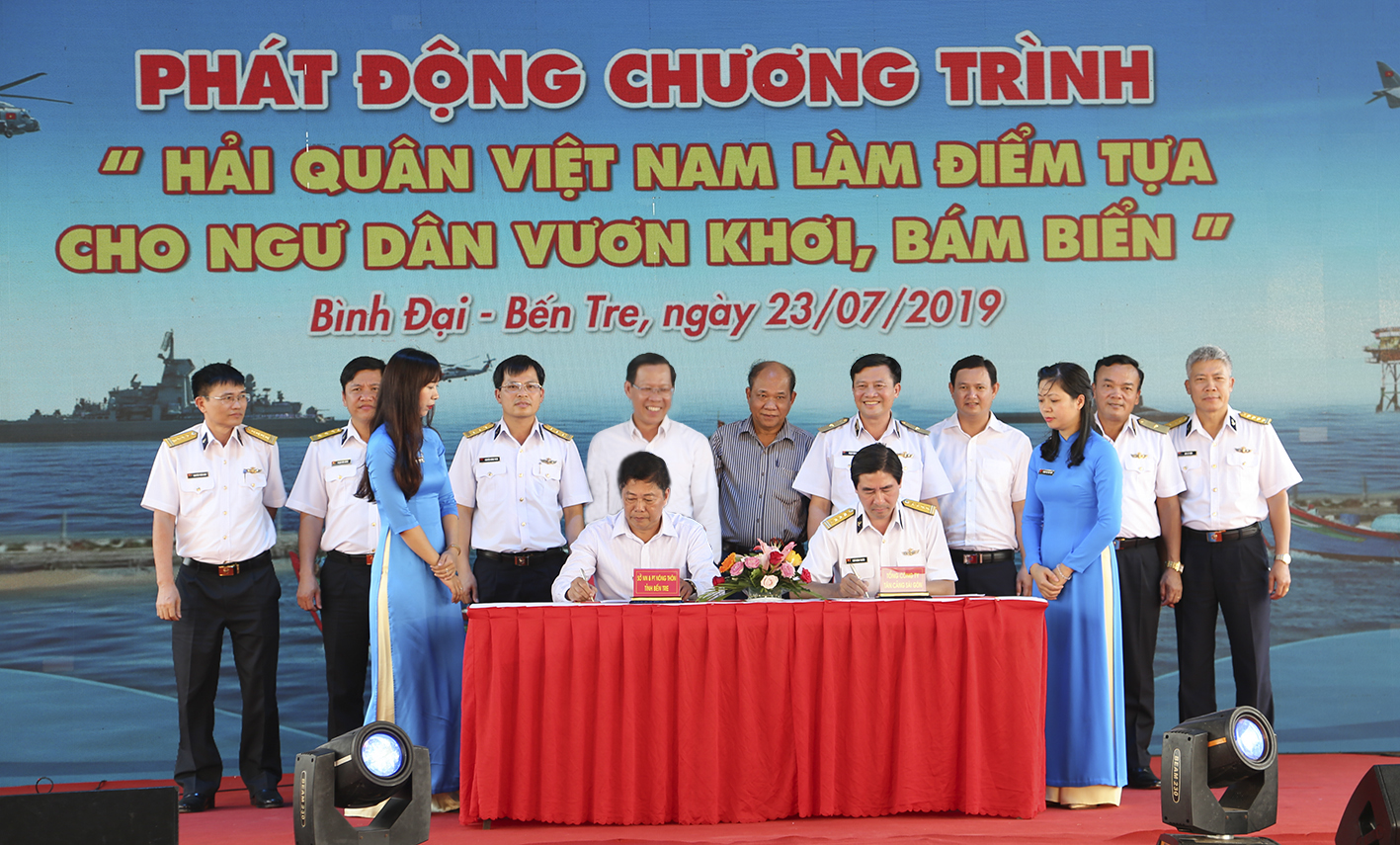 Phát biểu tại lễ ký kết, Chuẩn Đô đốc Phạm Văn Vững, Bí thư Đảng ủy, Chính ủy Hải quân khẳng định: Các thế hệ cán bộ, chiến sĩ Hải quân luôn trân trọng tri ân tình cảm sâu nặng, sự cưu mang, đùm bọc, phối hợp chiến đấu của quân và dân các địa phương ven biển, trong đó có tỉnh Bến Tre trong những năm tháng chiến tranh cũng như trong sự nghiệp bảo vệ chủ quyền biển, đảo của Tổ quốc ngày nay. Lịch sử Hải quân mãi mãi khắc ghi hình ảnh những người dân Bến Tre hiền hậu, chất phát nhưng gan dạ, kiên cường, dũng cảm chiến đấu, quyết tâm giữ vững bến tiếp nhận vũ khí để chi viện cho chiến trường miền Nam.