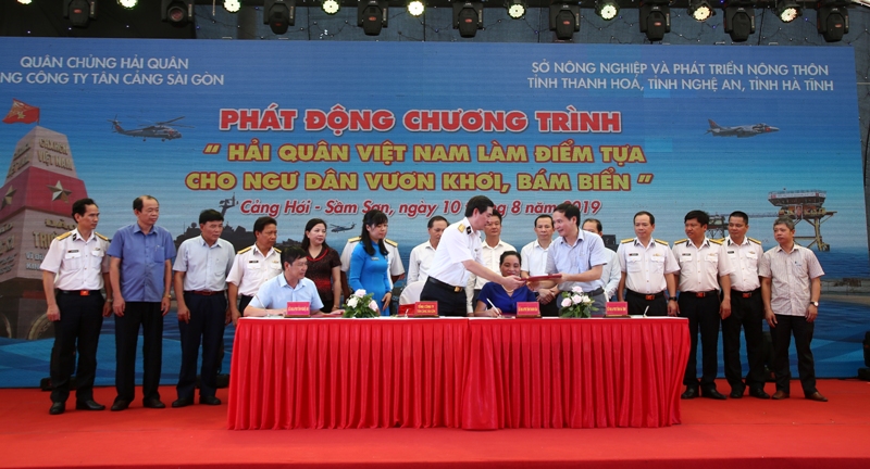 Sáng 10-8, tại TP. Sầm Sơn, tỉnh Thanh Hóa, Tổng công ty (TCT) Tân cảng Sài Gòn phối hợp với Sở Nông nghiệp và Phát triển nông thôn tỉnh Thanh Hóa, Nghệ An, Hà Tĩnh ký kết Chương trình “Hải quân Việt Nam làm điểm tựa cho ngư dân vươn khơi, bám biển”.