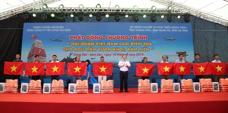 TCT Tân cảng Sài Gòn tặng 3.600 cờ Tổ quốc, 200 áo phao, 30 tủ thuốc cho ngư dân 3 tỉnh và khám, cấp thuốc, tư vấn cho hơn 100 lượt người dân TP. Sầm Sơn, tỉnh Thanh Hóa.