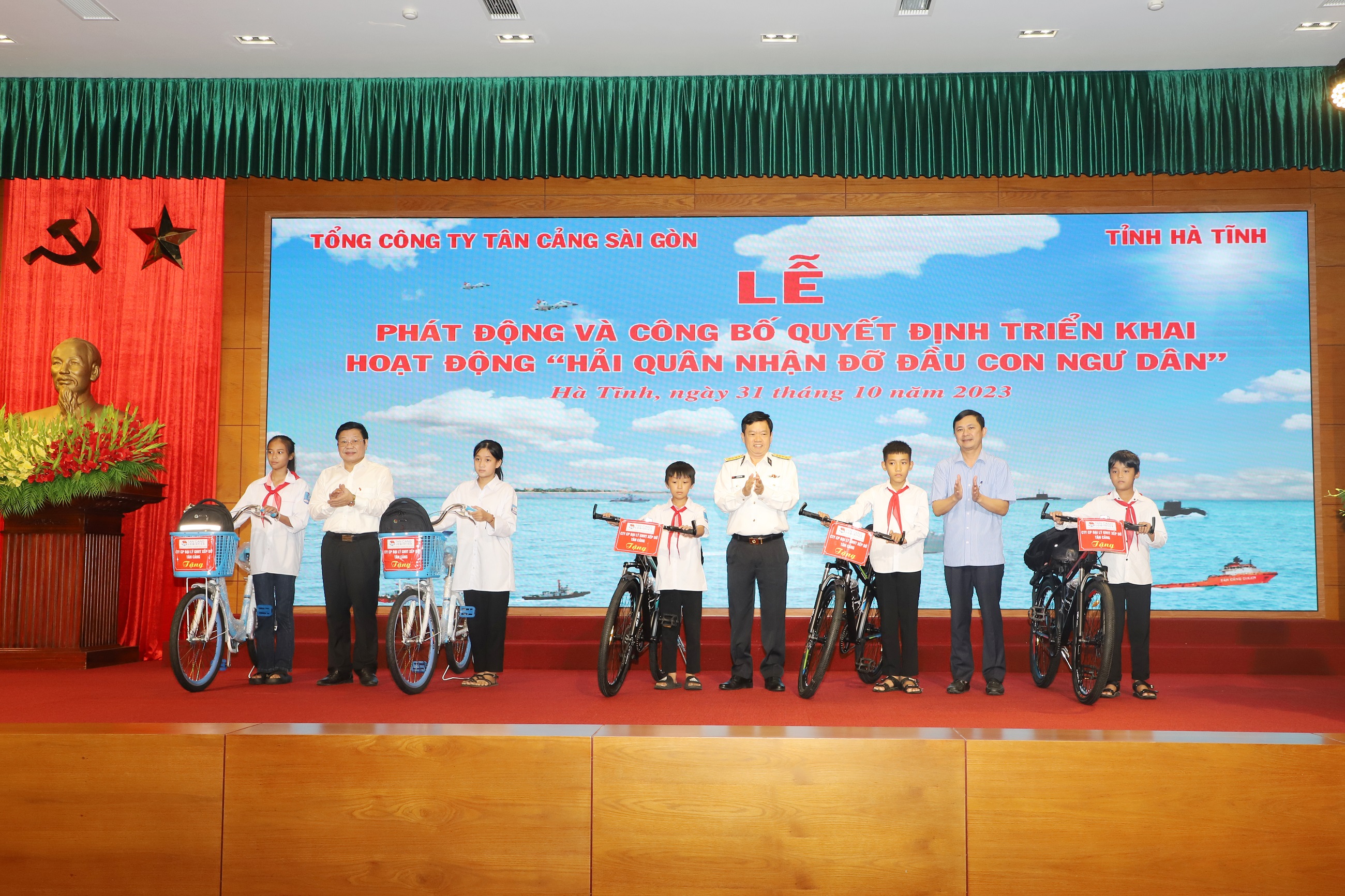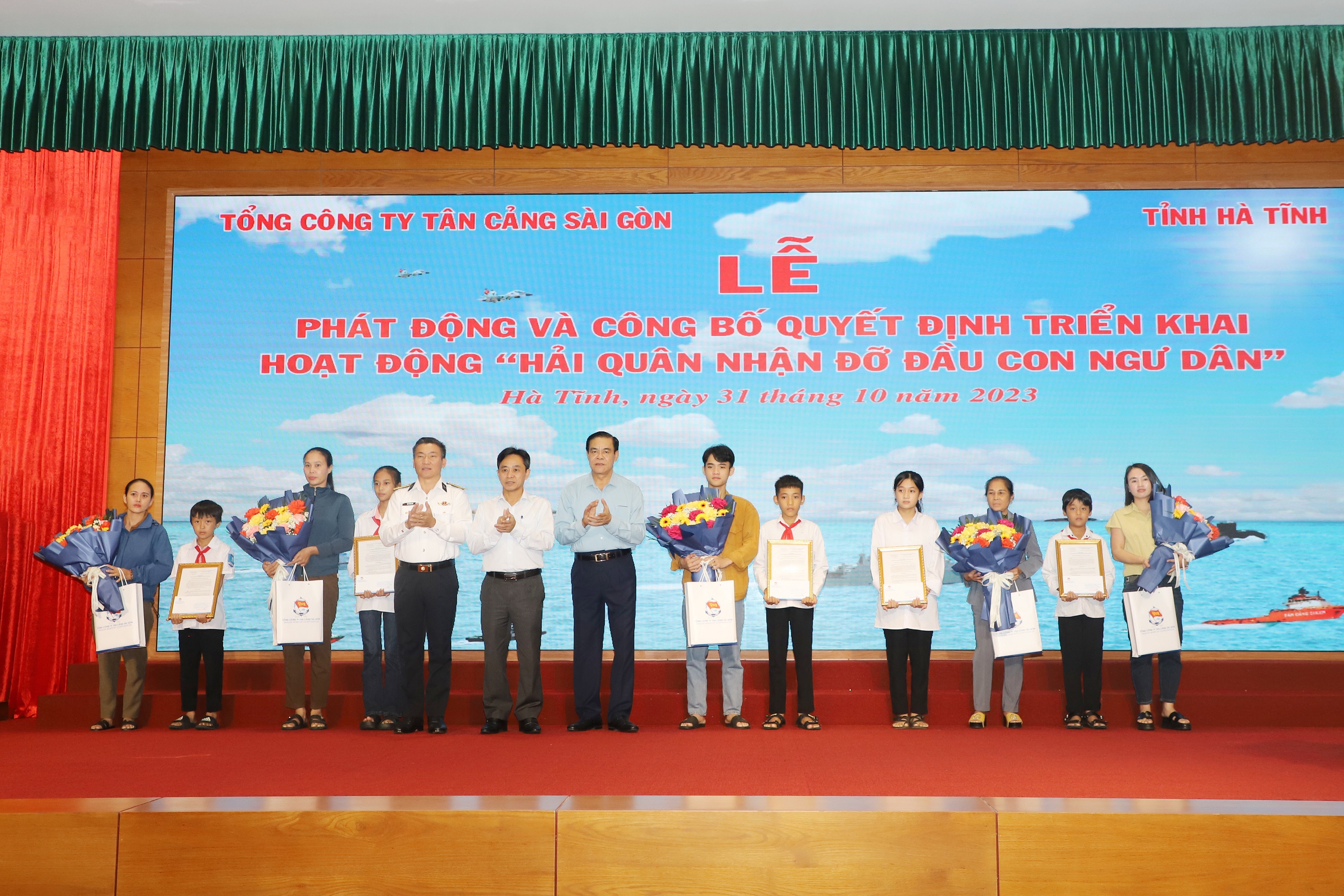 Chiều 31/10, tại TP. Hà Tĩnh, Tổng công ty Tân cảng Sài Gòn phối hợp với Tỉnh ủy, UBND tỉnh Hà Tĩnh tổ chức Lễ phát động và công bố quyết định triển khai hoạt động“Hải quân nhận đỡ đầu con ngư dân”.