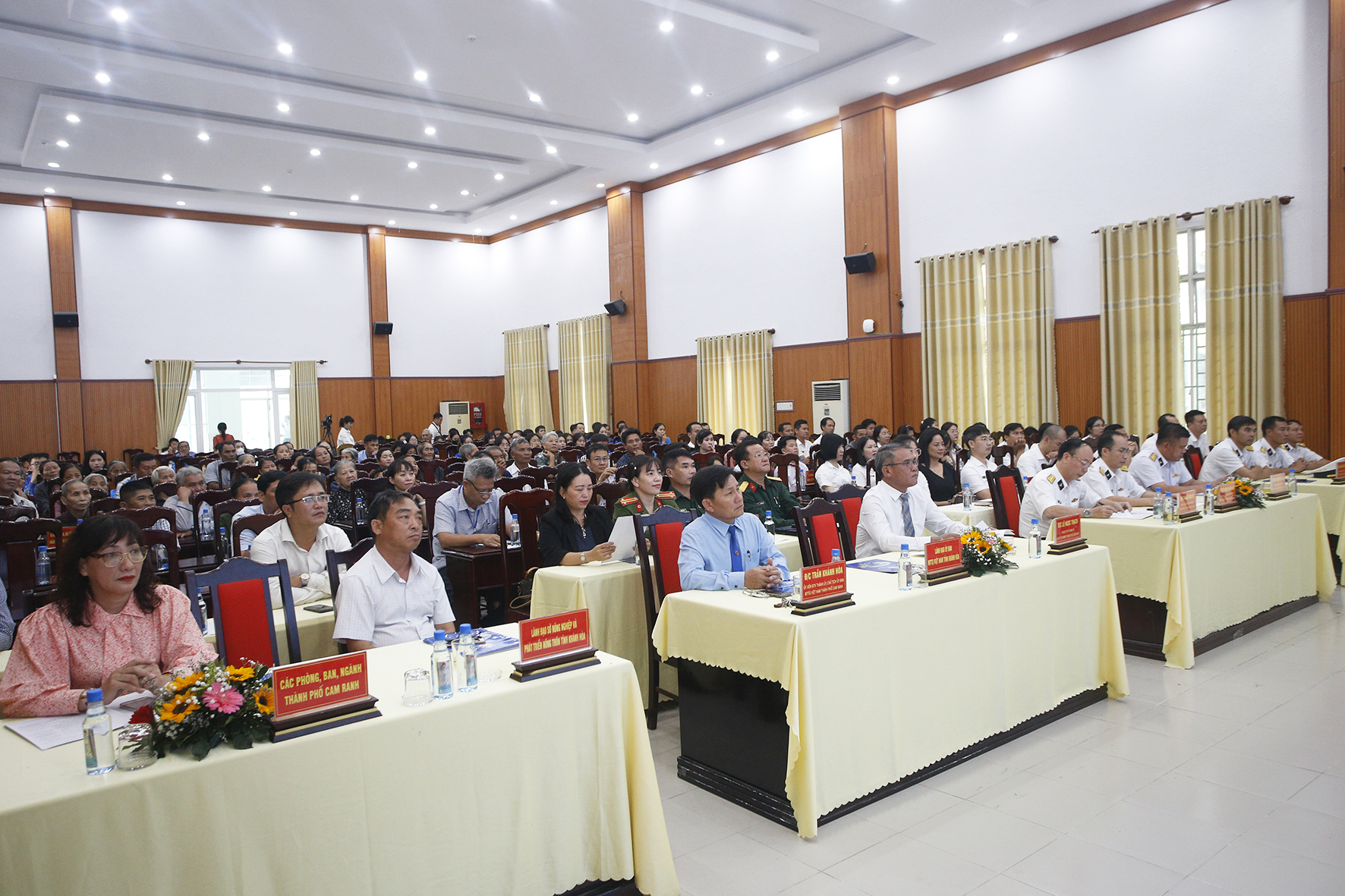 Tham dự có các đồng chí: Lê Ngọc Thạch, Chủ tịch UBND TP.Cam Ranh; Trần Khánh Hòa, Chủ tịch Uỷ ban Mặt trận Tổ quốc Việt Nam TP.Cam Ranh; Đại tá Đỗ Văn Tú, Chủ nhiệm Chính trị Tổng công ty Tân cảng Sài Gòn.