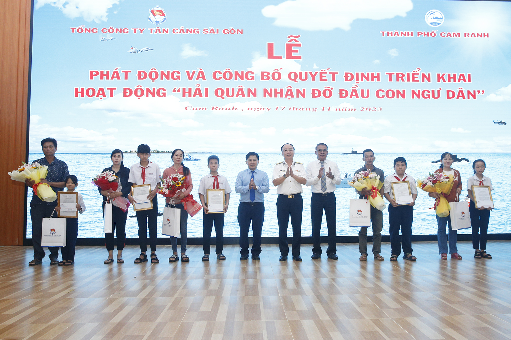 Chiều 17/11, tại TP.Cam Ranh, tỉnh Khánh Hòa, Tổng công ty Tân cảng Sài Gòn phối hợp với UBND TP.Cam Ranh tổ chức lễ phát động và công bố quyết định triển khai hoạt động “Hải quân nhận đỡ đầu con ngư dân”.