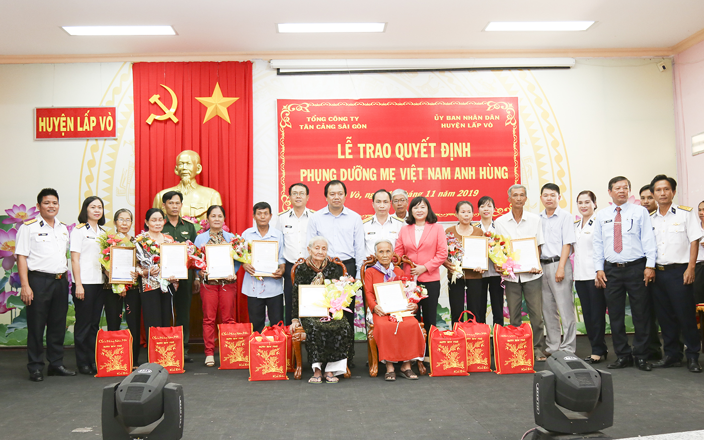 Ngày 19-11, tại huyện Lấp Vò, tỉnh Đồng Tháp, Tổng công ty (TCT) Tân cảng Sài Gòn đã tổ chức Lễ trao quyết định phụng dưỡng suốt đời 9 Mẹ Việt Nam Anh hùng (MVNAH) của huyện. Tham dự lễ có các MVNAH; đại biểu đại diện lãnh đạo TCT Tân cảng Sài Gòn; lãnh đạo, chính quyền, đoàn thể địa phương.