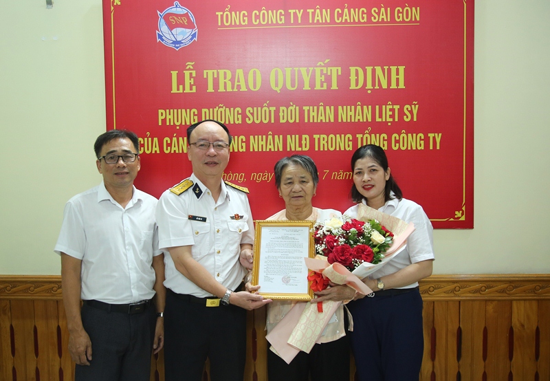 Sáng 20/7, tại phường Đông Hải 1, quận Hải An, TP. Hải Phòng, Tổng công ty Tân cảng Sài Gòn phối hợp với chính quyền địa phương tổ chức Lễ trao quyết định phụng dưỡng suốt đời thân nhân liệt sĩ. Đại tá Đỗ Văn Tú, Chủ nhiệm Chính trị Tổng công ty chủ trì buổi lễ.