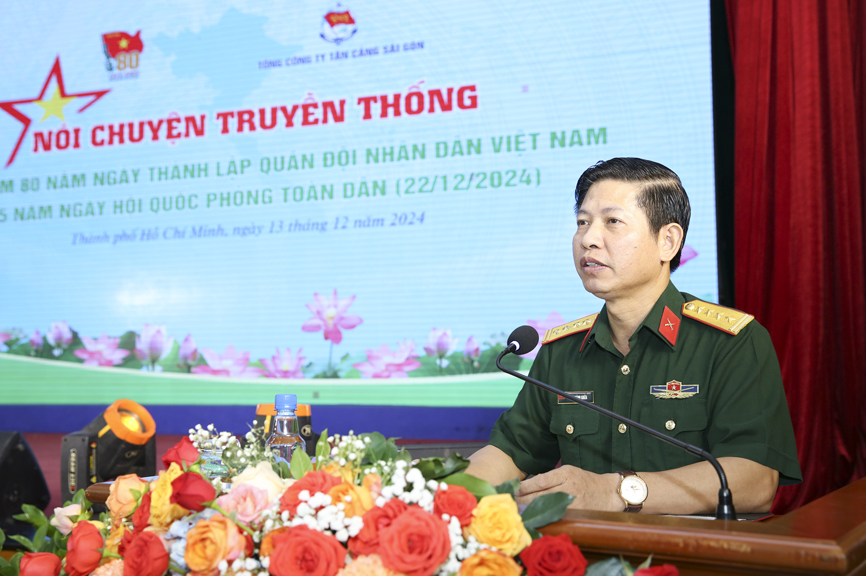 Sáng 13/12, tại TP. Hồ Chí Minh, Tổng công ty Tân cảng Sài Gòn tổ chức nói chuyện truyền thống với chủ đề “Phát huy truyền thống của Quân đội nhân dân Việt Nam trong kỷ nguyên mới, kỷ nguyên vươn mình của dân tộc”. Đại tá Ngô Thành Khiên, Phó Trưởng phòng báo cáo viên, Cục Tuyên huấn, Tổng cục Chính trị truyền đạt nội dung.