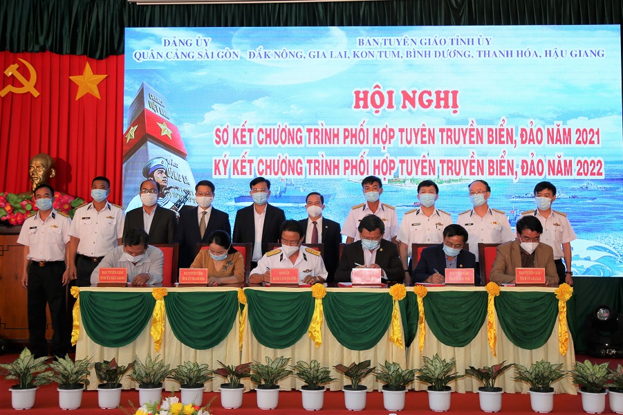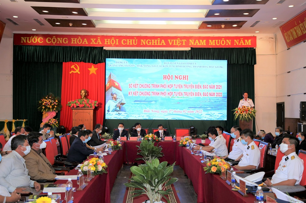 Sáng 17/2, tại thành phố Gia Nghĩa, tỉnh Đắk Nông, Tổng công ty Tân cảng Sài Gòn và Ban Tuyên giáo Tỉnh ủy các tỉnh Đắk Nông, Gia Lai, Kon Tum, Bình Dương, Thanh Hóa và Hậu Giang tổ chức Hội nghị sơ kết chương trình phối hợp tuyên truyền biển, đảo năm 2021 và ký kết chương trình phối hợp tuyên truyền biển, đảo năm 2022.