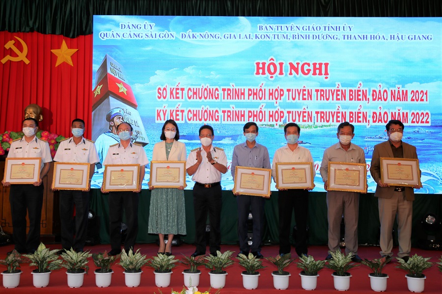 Dịp này, Bộ Tư lệnh Hải quân và UBND tỉnh Đắk Nông tặng Bằng khen cho các tập thể, cá nhân có thành tích xuất sắc trong công tác tuyên truyền biển, đảo năm 2021.