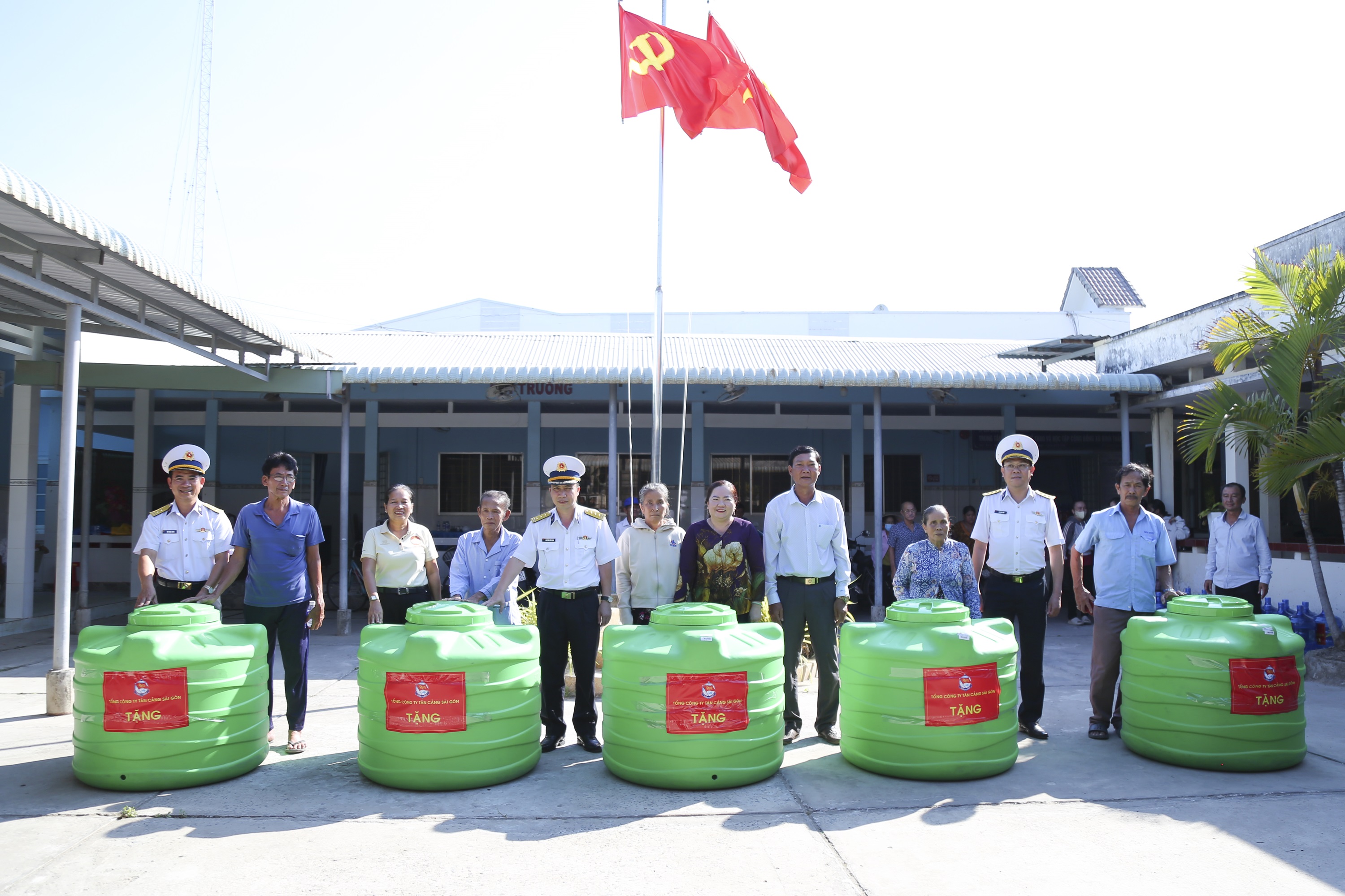 50 bồn chứa nước do Tổng công ty Tân cảng Sài Gòn trao tặng nhân dân