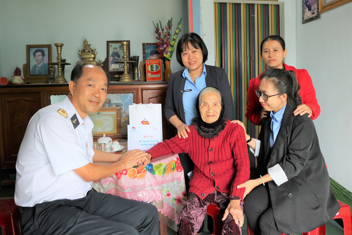 Ngày 9-12, tại Bình Định và Quảng Ngãi, Tổng công ty Tân cảng Sài Gòn đã đến thăm, động viên, tặng quà các gia đình Mẹ Việt Nam Anh hùng bị thiệt hại do cơn bão số 9 gây ra.