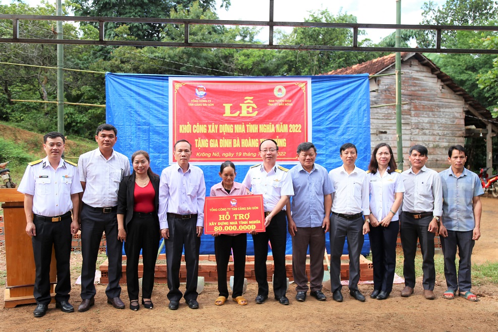 Dịp này, Tổng công ty Tân cảng Sài Gòn phối hợp với Ban Tuyên giáo Tỉnh ủy Đắk Nông và chính quyền huyện Krông Nô tổ chức khởi công xây dựng nhà 2 căn nhà tình nghĩa cho gia đình bà Hoàng Thị Chủng, thôn Nam Tân, xã Nam Đà và gia đình ông Lang Thang Như, thôn Đắk Xuân, xã Nam Xuân, mức hỗ trợ mỗi căn nhà 80 triệu đồng trích từ nguồn quỹ xã hội từ thiện của Tổng công ty Tân cảng Sài Gòn.