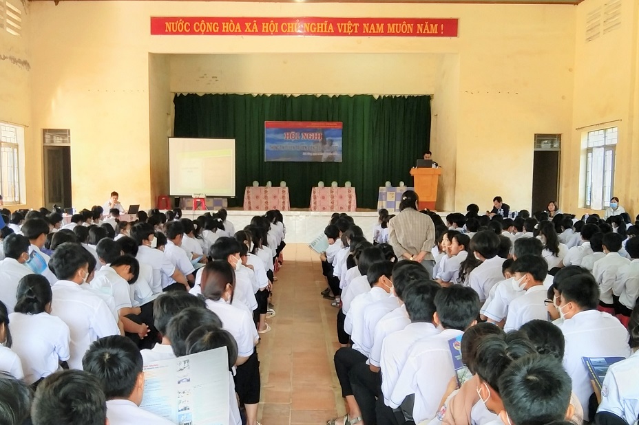 Quang cảnh buổi thông tin tại Trường THPT Phan Bội Châu, huyện Cư Jút