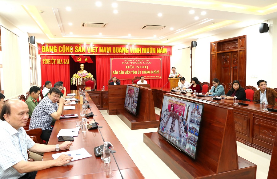 Tham dự hội nghị có các đồng chí: Huỳnh Thế Mạnh, Ủy viên Ban Thường vụ Tỉnh ủy, Trưởng ban Tuyên giáo Tỉnh ủy Gia Lai; Đỗ Tiến Đông, Tỉnh ủy viên, Phó Trưởng ban Thường trực Ban Tuyên giáo Tỉnh ủy Gia Lai; gần 1700 đại biểu là báo cáo viên cấp tỉnh, huyện, thị xã, thành phố, đảng ủy khối các cơ quan và doanh nghiệp trên địa bàn tỉnh.