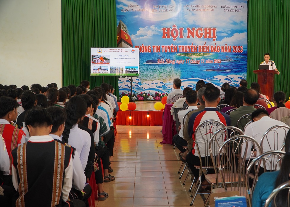 Ngày 17/11, tại tỉnh Đắk Nông, Tổng công ty Tân cảng Sài Gòn phối hợp với Ban Tuyên giáo Tỉnh ủy, Đảng ủy khối các cơ quan và doanh nghiệp tỉnh Đắk Nông tổ chức Hội nghị thông tin về biển, đảo năm 2023 cho hơn 500 công nhân Công ty Nhôm Đắk Nông - TKV và giáo viên, học sinh Trường THPT Dân tộc nội trú N’Trang Lơng.