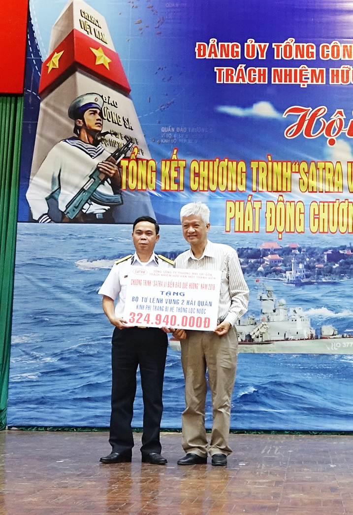 Dịp này, SATRA đã trao gần 325 triệu đồng để trang bị hệ thống lọc nước cho các đơn vị làm nhiệm vụ trên biển và nhà giàn DK1; tặng 75 triệu đồng cho Căn cứ 696, Bộ Tư lệnh Vùng 2 Hải quân để chăm lo công tác chính sách.