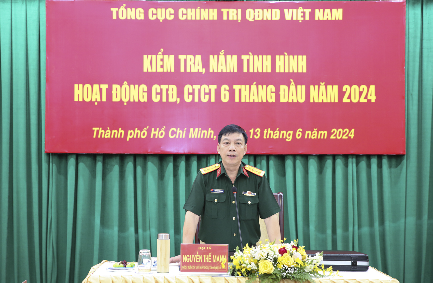 Chiều 13/6, đoàn công tác của Tổng cục Chính trị Quân đội nhân dân Việt Nam do Đại tá Nguyễn Thế Mạnh, Phó cục trưởng Cục Tuyên huấn được thủ trưởng Tổng cục Chính trị ủy quyền làm trưởng đoàn công tác đã đến kiểm tra, nắm tình tình hoạt động CTĐ, CTCT 6 tháng đầu năm 2024 tại Tổng công ty Tân cảng Sài Gòn (TCSG).