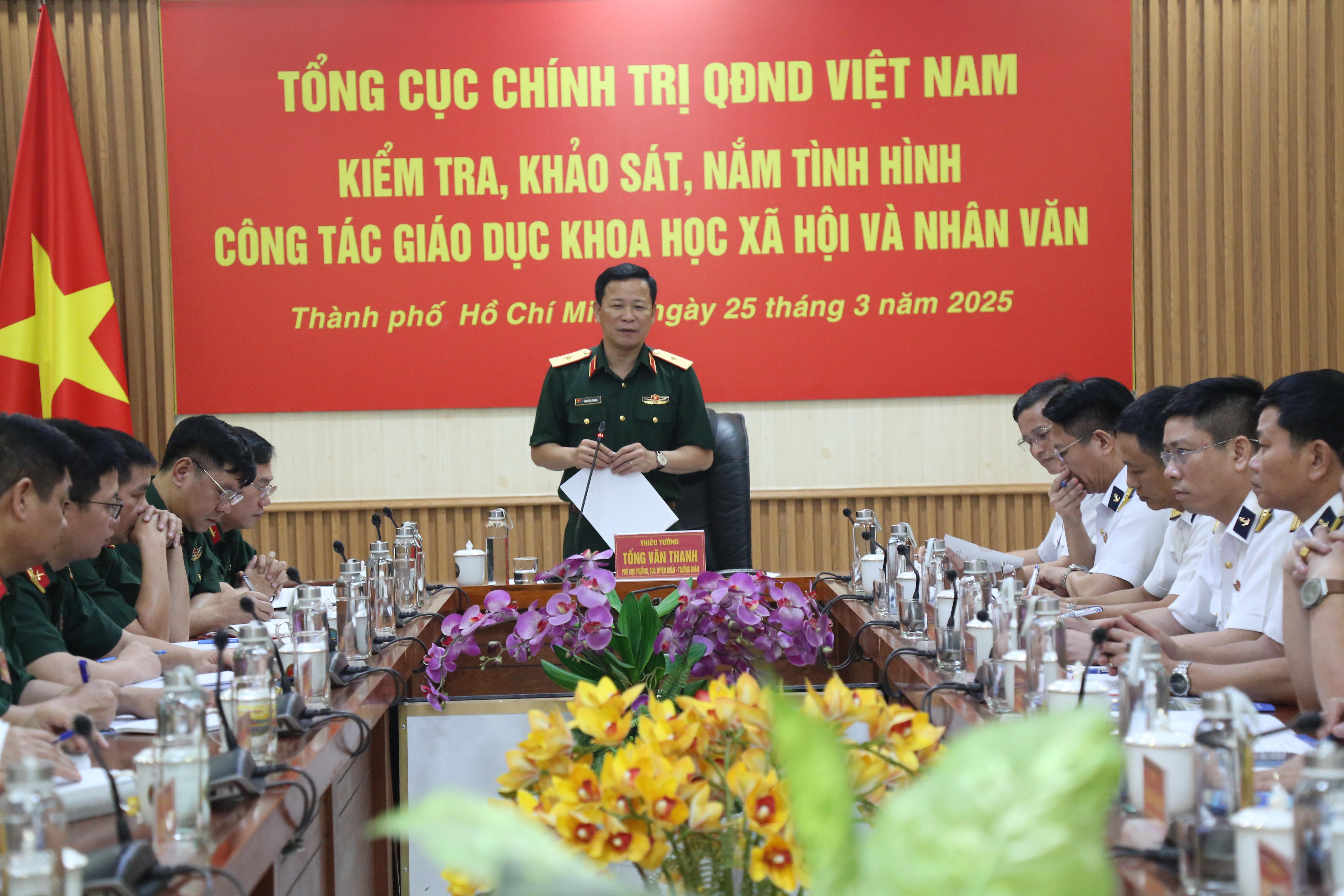 Sáng 25/3, đoàn công tác của Tổng cục Chính trị Quân đội nhân dân Việt Nam do Thiếu tướng Tống Văn Thanh, Phó Cục trưởng Cục Tuyên huấn làm trưởng đoàn đã kiểm tra kết quả thực hiện công tác giáo dục khoa học xã hội và nhân văn (KHXH&NV) tại Trường Cao đẳng Kỹ thuật Hải quân.