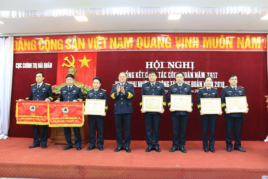 Tại hội nghị, thừa ủy quyền của Bộ Tư lệnh, thủ trưởng Cục Chính trị Hải quân tặng Cờ thưởng thi đua và Bằng khen của Bộ Tư lệnh Hải quân cho 7 tập thể vì đã có thành tích trong xây dựng công đoàn cơ sở vững mạnh năm 2017.